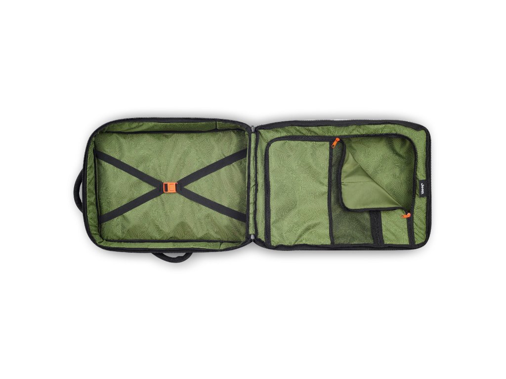 - Na zadní straně naleznete popruh na trolley kufru - batoh si navléknete na kufr a ulehčíte tak svým zádům