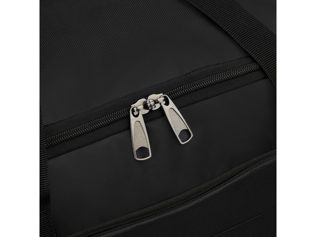 - Hlavní komora se uzavírá dvoucestným zipem s očky pro uzamknutí visacím zámečkem