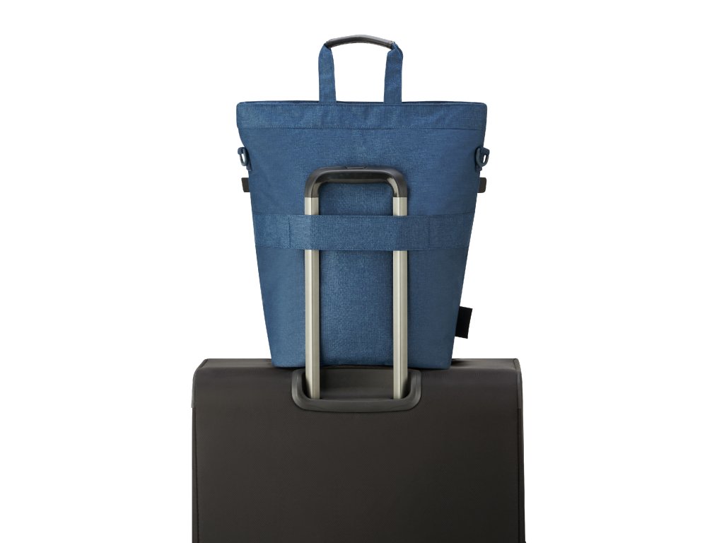- Na zadní straně tašky je popruh pro nasunutí na rukojeť kufru pro snadné a pohodlné cestování například na letišti