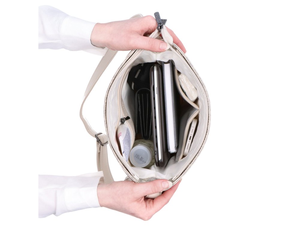 Kabelka přes rameno od značky Le Sands s nadčasovým designem je vyrobená z kvalitního jemného nylonu. Kabelka má praktickou zadní kapsu a prodlužovací popruh.