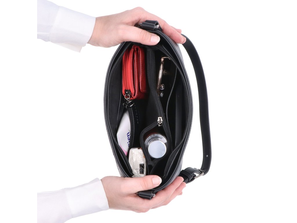 - Uvnitř je kabelka rozdělena jednou velkou zipovou kapsou.