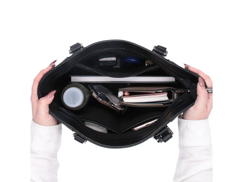 Elegantní shopper kabelka je na přední straně ozdobena prošitím. Tato kabelka bude skvělým doplňkem pro ženu, která ocení vkusný design a praktické využití.