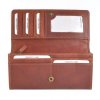 Koňaková dámská kožená peněženka se zapínáním na cvoček. Uvnitř najdete:- 2 přihrádky na bankovky