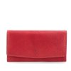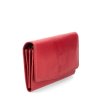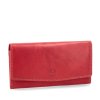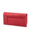 Červená dámská kožená peněženka se zapínáním na cvoček. Uvnitř najdete:- 3 přihrádky na bankovky