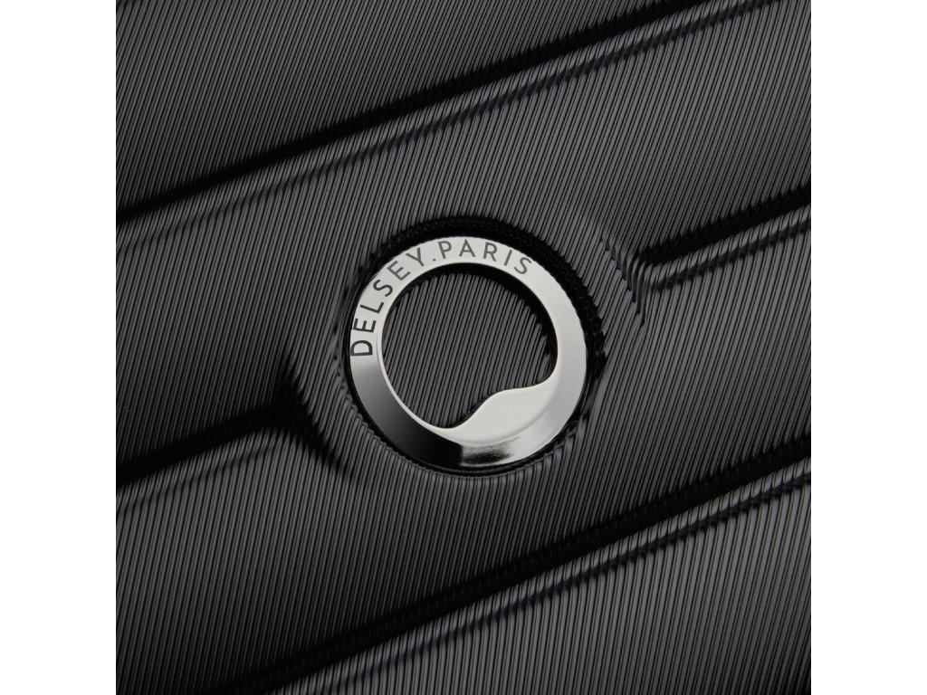 Lifestylová řada kufrů Delsey Shadow 5.0 v klasické černé barvě s indikátorem přetížení kufru.