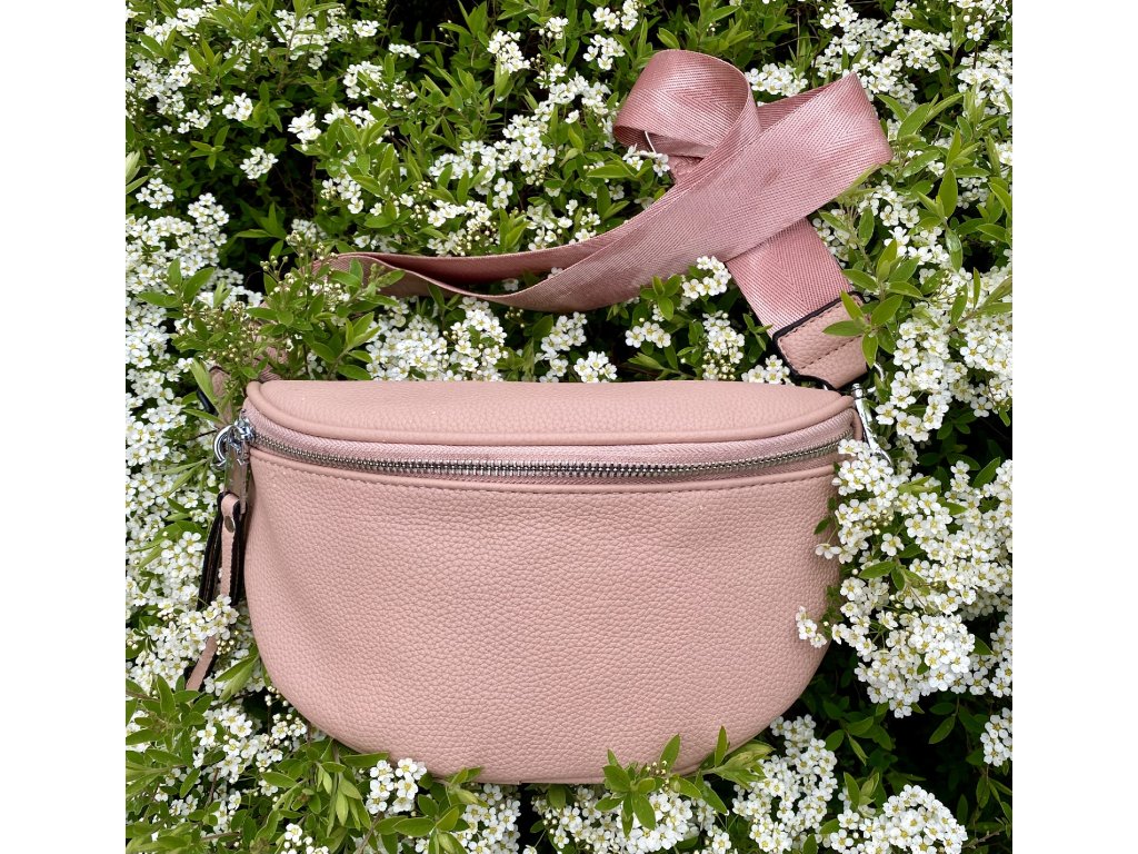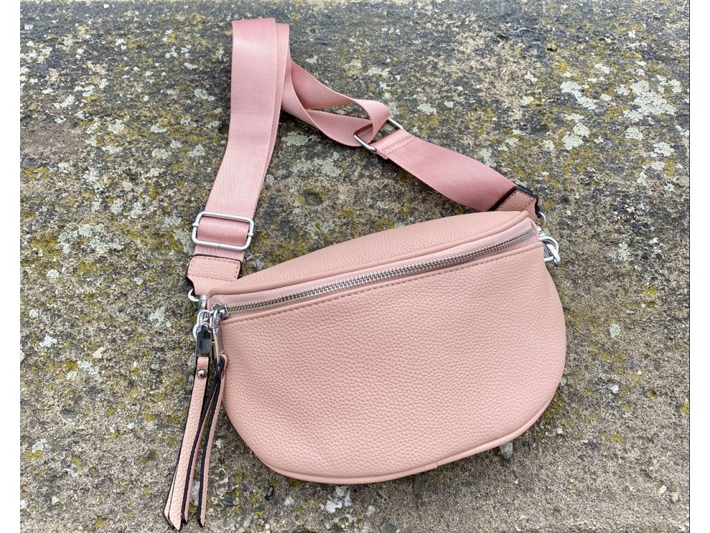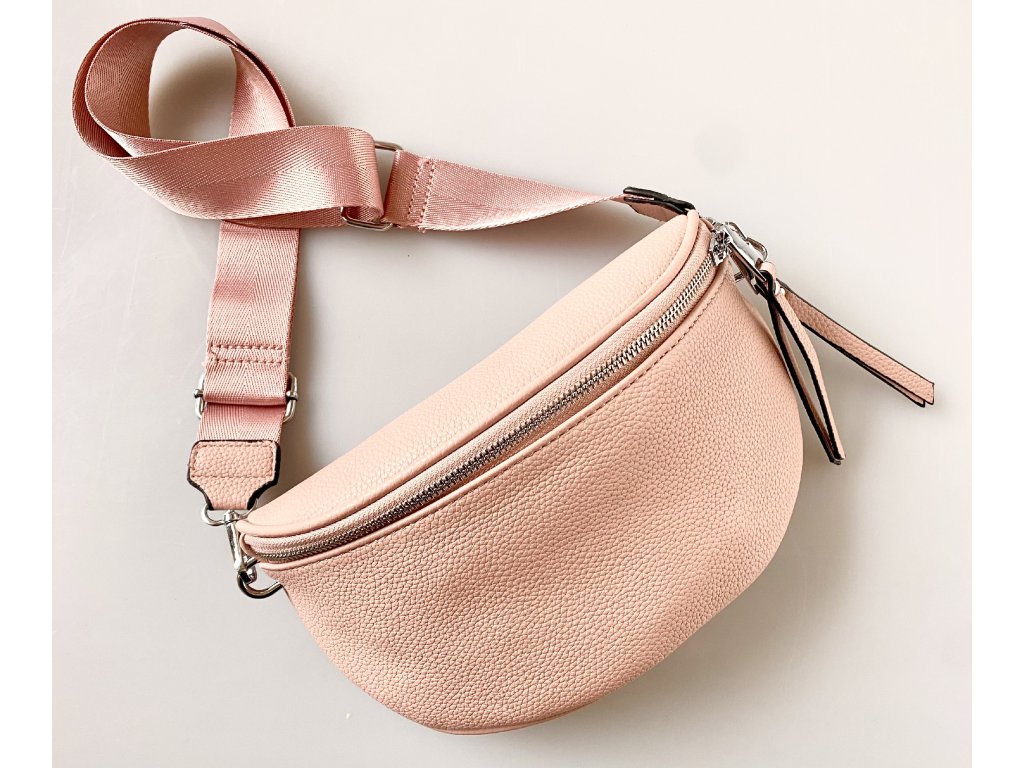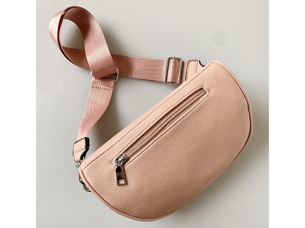 Stylová dámská koženková crossbody ledvinka s atraktivními doplňky.