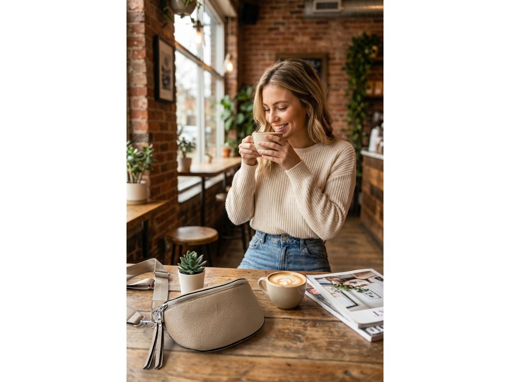 Dámská crossbody ledvinka - tmavě béžová
