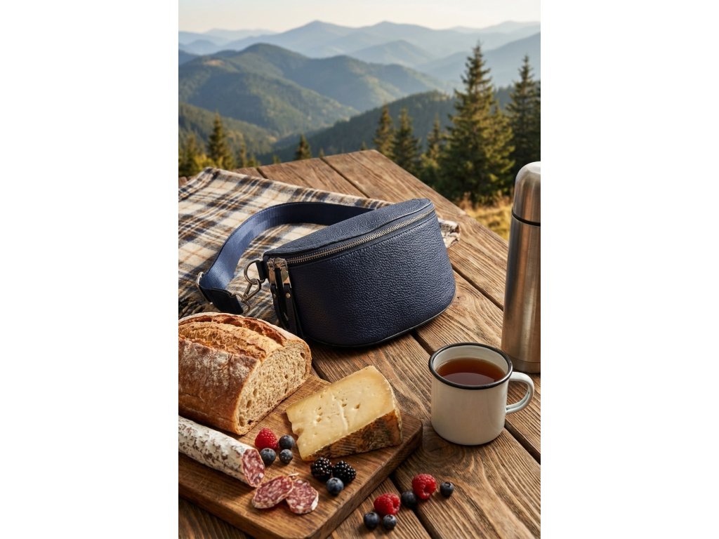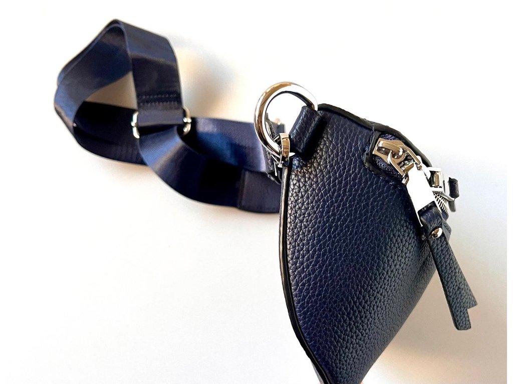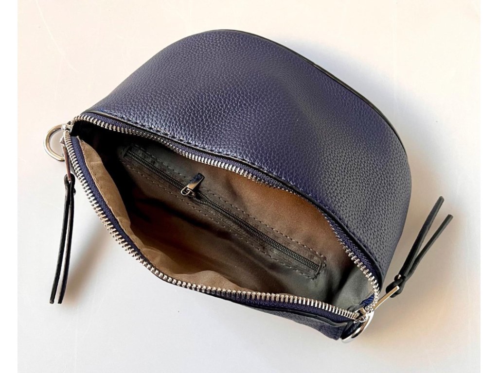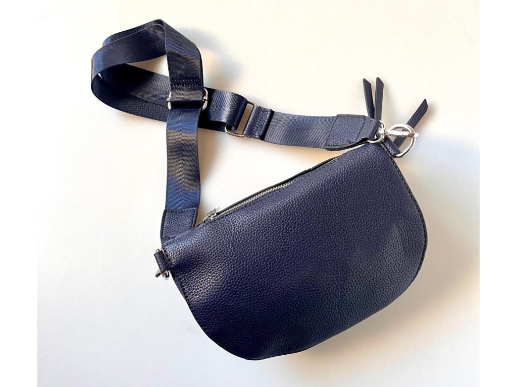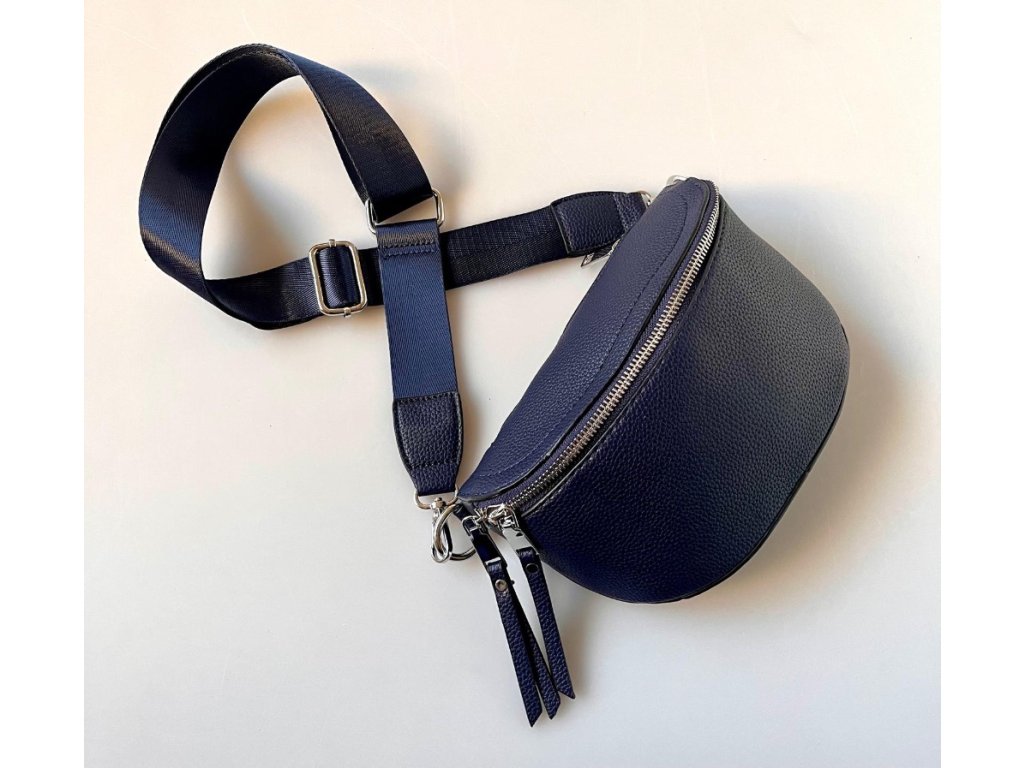 Stylová dámská koženková crossbody ledvinka s atraktivními doplňky.