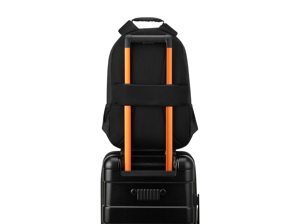 - Na zadní straně naleznete popruh na trolley kufru - batoh si navléknete na kufr a ulehčíte tak svým zádům
