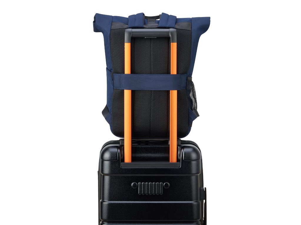 - na zadní straně naleznete popruh na trolley kufru - ideální na Vaše pracovní cesty - batoh si navléknete na kufr a ulehčíte tak svým zádům