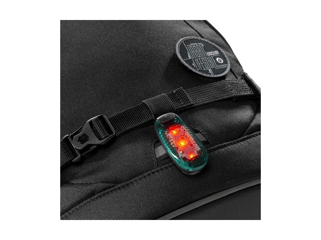 – snadné přichycení na aktovku, batoh, sportovní tašku, popruh, košili, pásek atd.