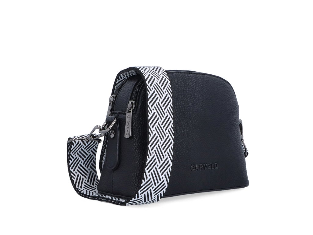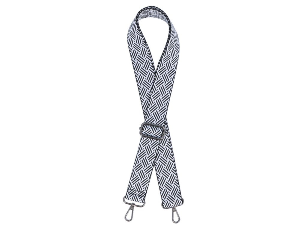 Náhradní popruh na kabelku / ledvinku - černo-bílý se stříbrným kováním