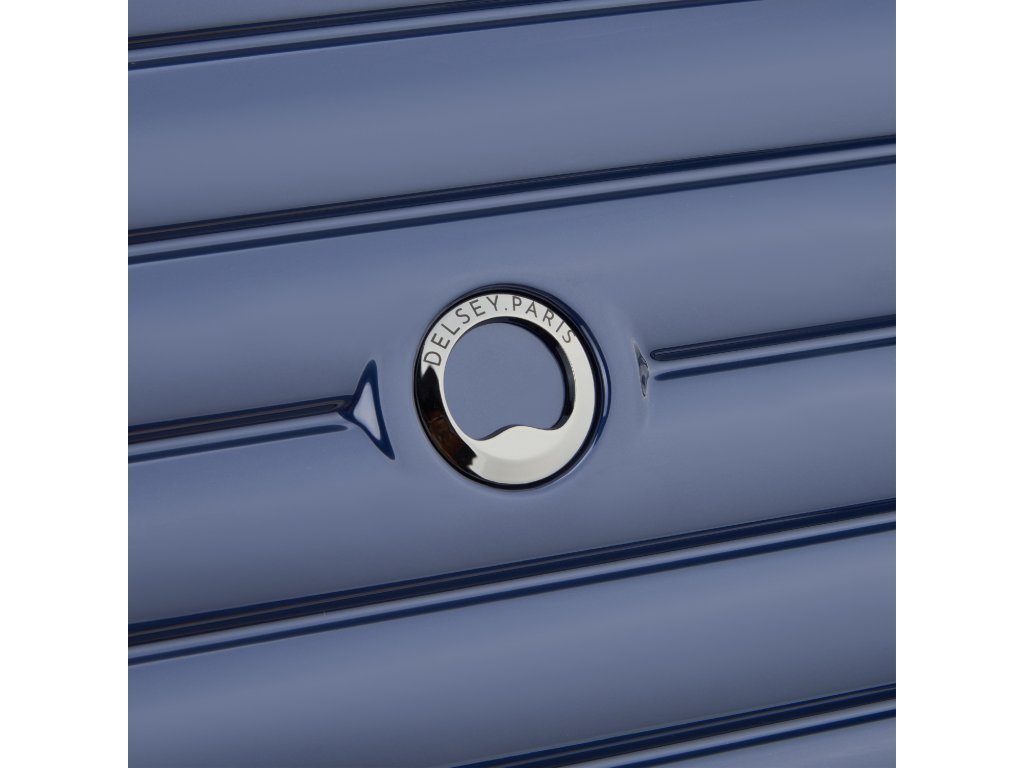 Lifestylová řada kufrů Delsey Shadow 5.0 ve stylové modré barvě v lesklém provedení.