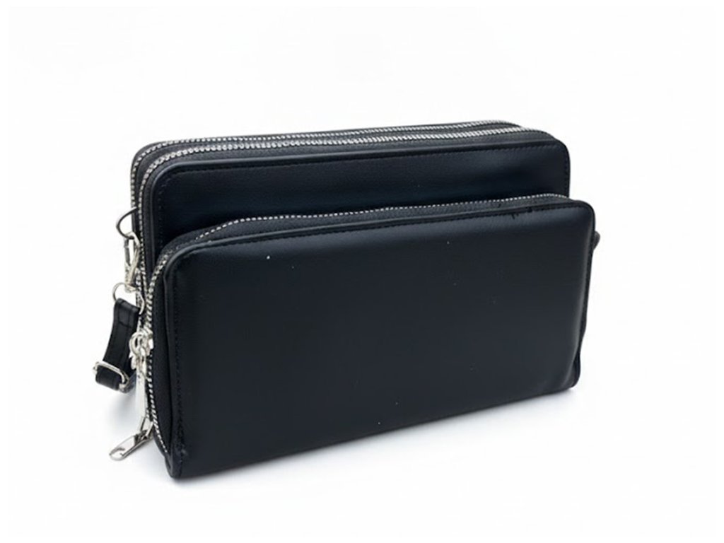 Syntetická kabelka na mobil s peněženkou 2v1 1018 - černá