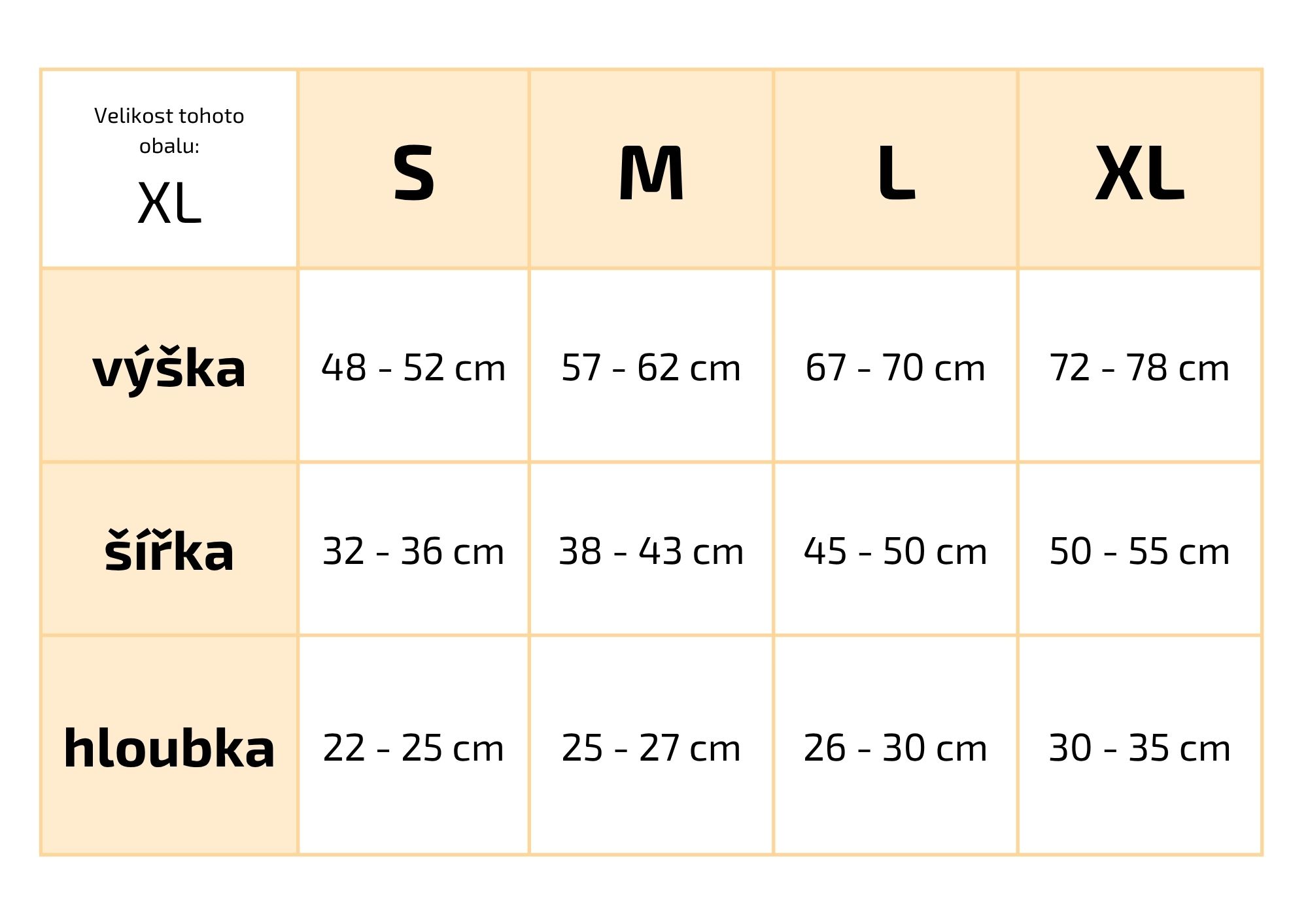 - praktický obal na extravelké kufry (velikost XL), viz Tabulka velikostí níže
